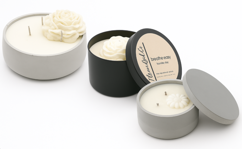 6.5 oz Tin, 8 oz Concrete Vessel, 8 oz Concrete Vessel With Lid